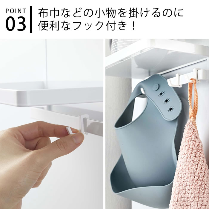 | 耐荷重 約3.75kg(上段収納:約1.5kg、下段収納:約1.5kg、フック1つあたり約250g) |