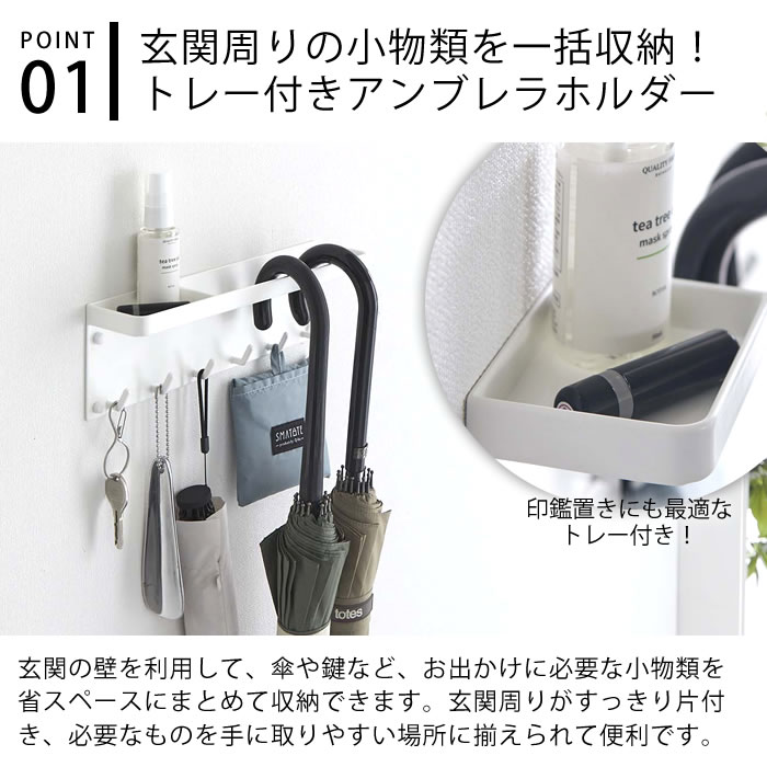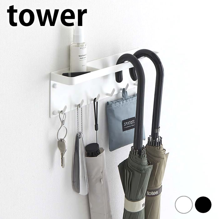 | 傘立て 玄関 石こうボード壁対応 トレー付きアンブレラホルダー タワー tower 傘 壁掛け ハンガー 壁面 6691 6692 整理 印鑑 トレー付き 収納 小物 山崎実業 yamazaki ヤマジツ フック付き タワーシリーズ |