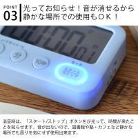 | 仕様 ■ タイマー設定時間 カウントダウン時:最大99時間59分50秒・最小10秒 カウントアップ時:最大99時間59分59秒 ■ 音量:2段階調節・消音設定可能 ■ アラーム:電子音・LEDライトの切り替え式 ■ アラーム鳴動時間:約 60秒 ■ 時計精度:月差±30秒 ■ 使用電池:単四マンガン及びアルカリ乾電池2本 ■ 設定した時刻(〇時〇分)にアラームを鳴らす事も可能です |