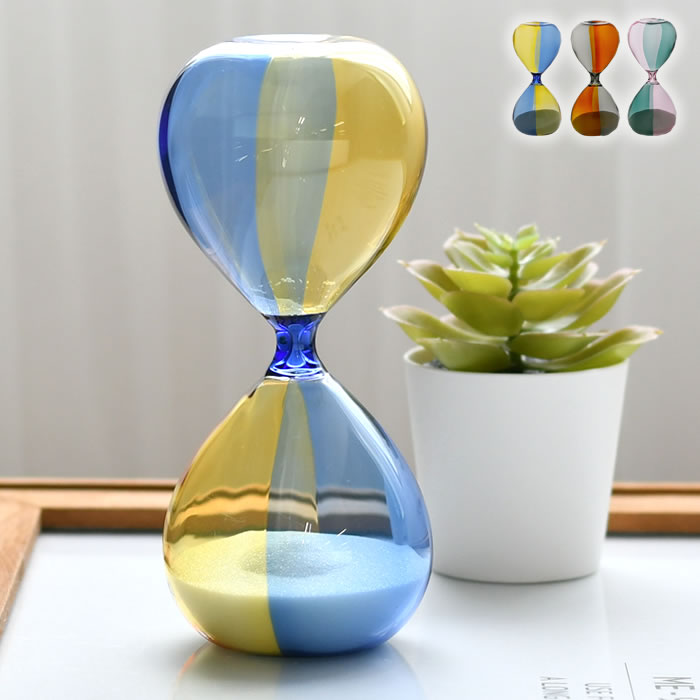 | ※本製品はハンドメイドの為、時間の誤差がございます。計測時間はあくまで目安としてご使用ください。 ※誤差±30秒を基準として設けておりますが、ご使用の環境の違いによっても計測時間が変わることがございます。 ※形状や本体色、2色のガラスの境目はそれぞれ若干の個体差がございます。また、本体側面には色の濃淡やガラス特有の緩やかな凹凸がありますが、すべて仕様となります。 ※本製品は繊細なつくりになっておりますので、急激な温度または気圧の変化などで破損する可能性がございます。サウナやお風呂、火気のそばでのご使用は避けてください。 ※白い砂の中にはまれに黒い粒が入っている場合がございますので、ご了承ください。 |