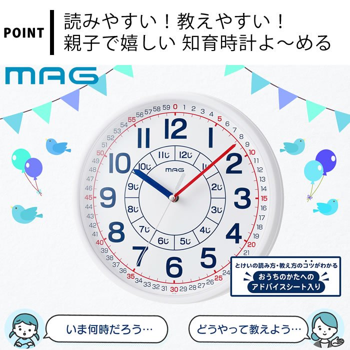 | 時計 知育 ノア精密 MAG 知育時計よ〜める W-736 入学 入園 電池式 幼児 小学生 リビング おしゃれ 時間管理 壁掛け 掛け時計 アナログ 勉強 学習 習慣 こども 見やすい わかりやすい ギフト 知育玩具 子供部屋 |