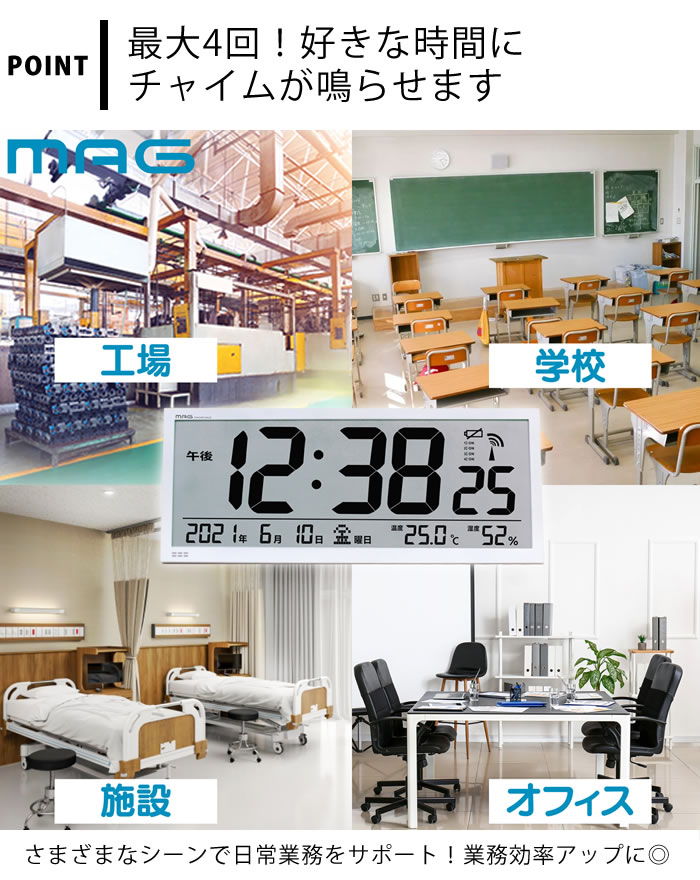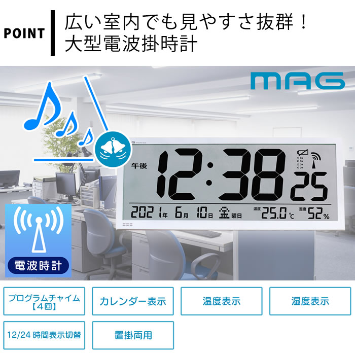 | 掛け時計 電波時計 時計 温度計 湿度計 置き時計 デジタル ノア精密 MAG 大型電波掛時計グランタイム W-780 業務用 見やすい ホワイト 白 オフィス 大きい カレンダー 電池式 おしゃれ かわいい チャイム 置掛兼用 卓上 スタンド |