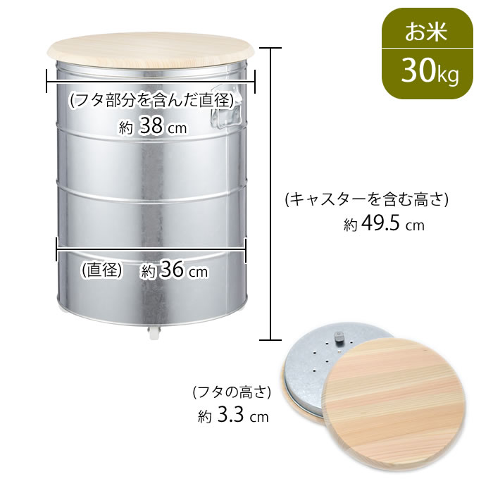 | オバケツ ライスストッカー 30kg キャスター付き ひのきフタ |