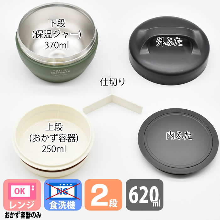 | 容量 おかず容器:約250ml 保温ジャー:約370ml。 |