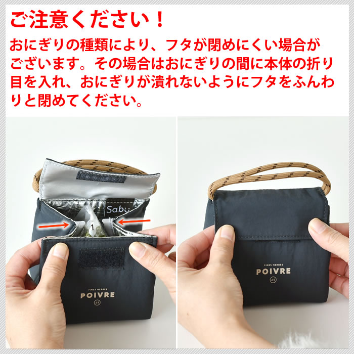 | おにぎり 弁当袋 サブヒロモリ ポワブル 保冷おにぎりポーチ 弁当袋 バッグ おむすび ロゴ 2個 コンパクト おすすめ 平たく アルミ蒸着シート プレゼント ハンドル付き 撥水加工 たためる 保冷 補助 ナイロン素材 |