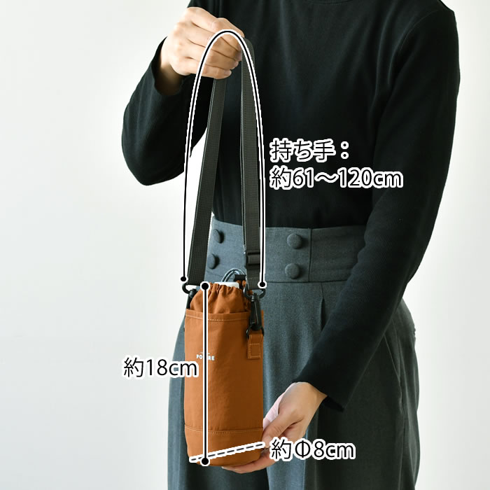 | サイズ 約 Φ8×H18cm(持ち手含まず) ショルダーストラップ:最短約60cm、最長約120cm |