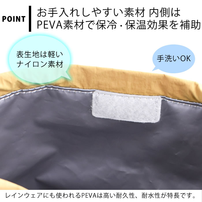 | 仕様 内側は耐久性、耐水性に優れたPEVA素材 手洗いOK |