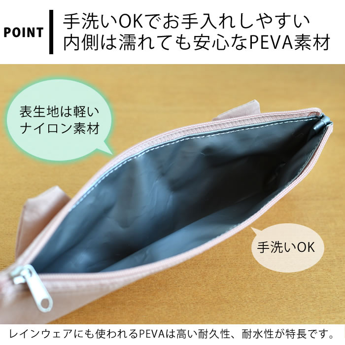 | 仕様 内側は耐久性、耐水性に優れたPEVA素材 手洗いOK |