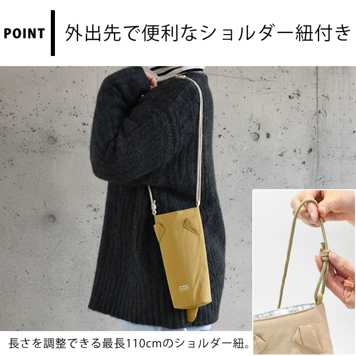 | 仕様 内側はシルバーコーティング加工 洗濯ネットに入れて洗濯OK 長さを調節できるショルダーストラップ付き(最長110cm) |
