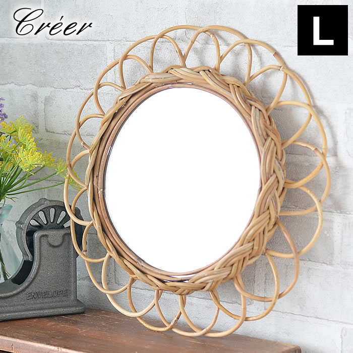 | ミラー 壁掛け creer クレエ アラログフラワーミラー L 鏡 かわいい ナチュラル 壁面 アンティーク 北欧 丸い 丸形 リビング 花モチーフ 玄関 トイレ ラタン |