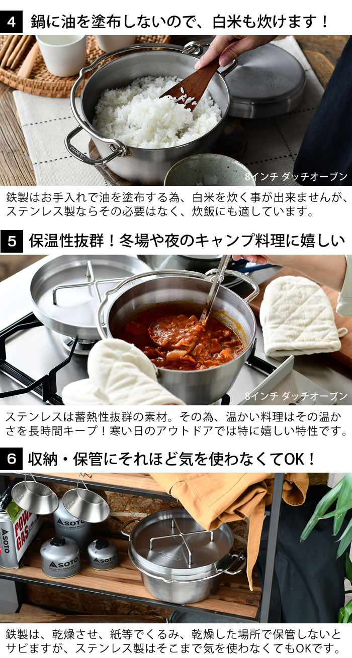 ![]() SOTO ステンレスダッチオーブン 10インチ収納ケース | ![]() SOTO ステンレスダッチオーブン専用リッドリフター | ![]() SOTO ステンレスダッチオーブン 10インチ底網 取替用 |
