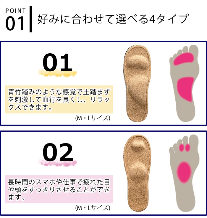 ヘルシールームサンダル ふみっぱ ![]() 指圧箇所は選べる4タイプ! 気になる部分だけをピンポイントに指圧「ヘルシールームサンダル ふみっぱ」。指圧箇所は選べる4タイプ。"01"は青竹踏みのような感覚で土踏まずを刺激して血行をよくする。"02"はスマホやPCで頑張った一日の終わりに。"03"はグィグィ刺激でコリをほぐし、筋肉の疲れをとる。"04"は履くだけ簡単、自宅で外反ケア。歩くたびにまるで足つぼサロンのような心地よさを味わえます。自宅でのリフレッシュやプレゼントにも最適です♪ ![]() ![]() ![]() ![]() ![]() ![]() ![]() ![]() ![]() ![]() |
