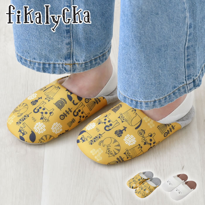 | スリッパ 室内 フィカリュッカ バブーシュスリッパ ルームスリッパ かわいい fikalycka おしゃれ プレゼント 洗える ネコグッズ 雑貨 猫 北欧 滑り止め ネコ柄 引越し祝い 新生活 来客用 室内履き |
