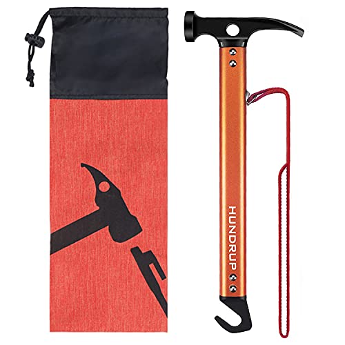 【強化版】 ペグハンマー HUNDRUP キャンプハンマー テントペグ 高炭素鋼 ハンマー 固定用リベット追加 収納袋付き(ランダム色) 3in