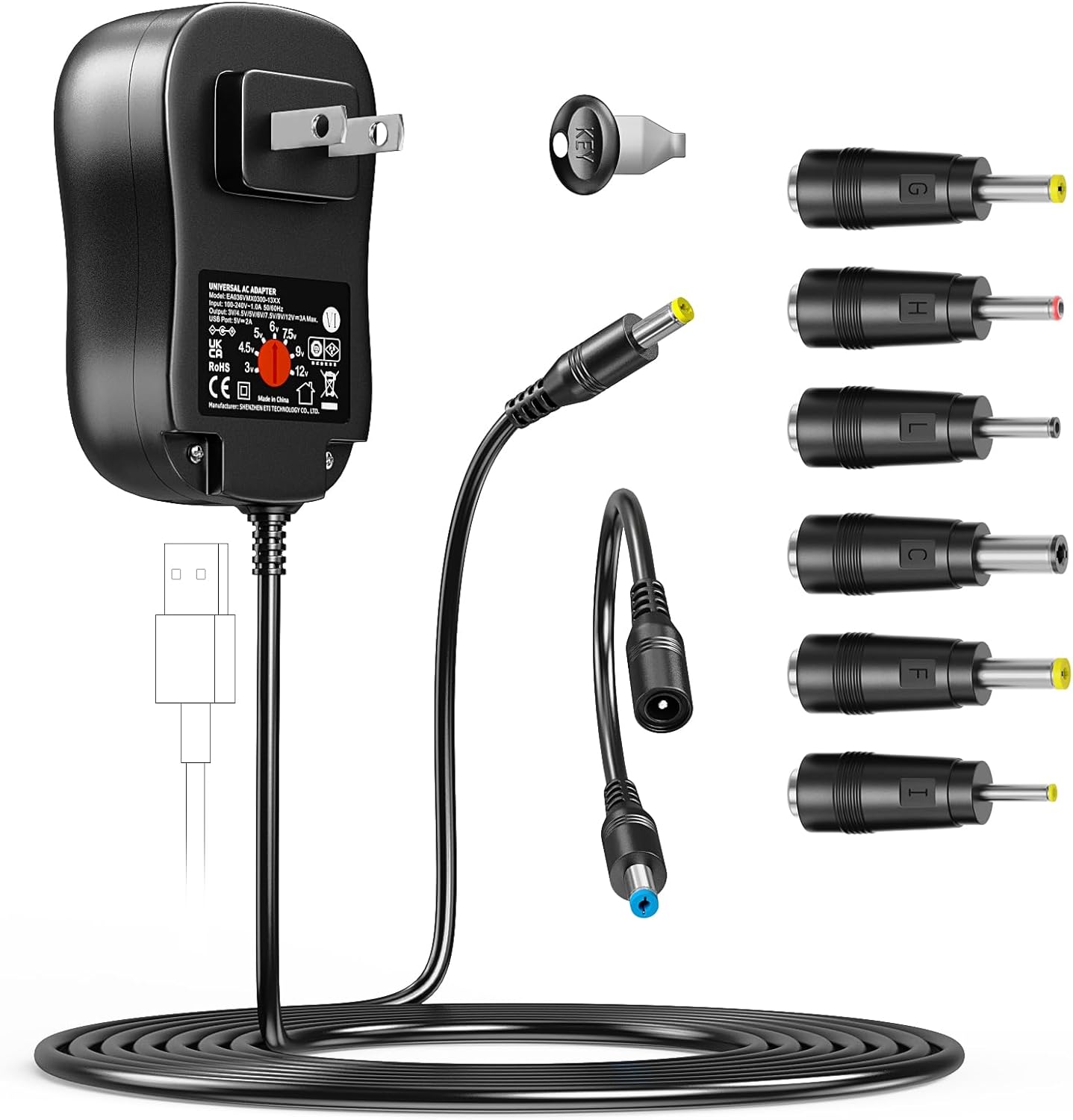 「ユニバーサル DCアダプタ」マルチ電圧充電器は、過電圧、過電流、短絡、および過熱の安全保護がある。ルーター、LEDストリップ、ランプ、ウェブサイト、セキュリティカメラ、HDMIスイッチャー、GPS、おもちゃ、USBハブ、タブレット、防犯録画機などのDC家電など電子機器の電源として安心使用可能です。