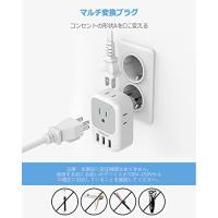 ・4個のAC差込口と3個のUSBポートを搭載した電源変換アダプターです。まとめて7台の機種が同時に充電で、コンセント不足が解決できます。コンセントは各方向に分配して、大きなアダプター同士が同時に挿入してもお互いに干渉せずに使用できます。