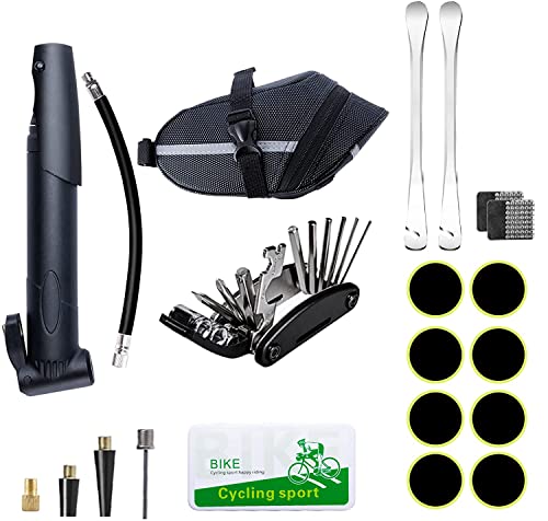 ・超充実の自転車パンク修理キット:パンク修理キット、空気入れセット、マルチツール、自転車用サドルバッグが含まれています。自転車修理キットはやはり常備しやすくなっています。いつでも対応できるので、安心ですよ。