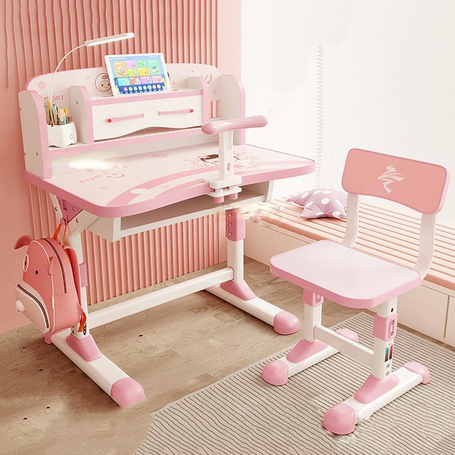 「多機能の勉強机」:この勉強机は、ノートブック、鉛筆、紙、調理器具などの文房具をすっきりと収納できる大型の引き出しを備えています。また、サイドに便利なフックが付いているため、子供たちが学校バッグを掛けることができ、組織的で整然とした学習環境を作り出します。