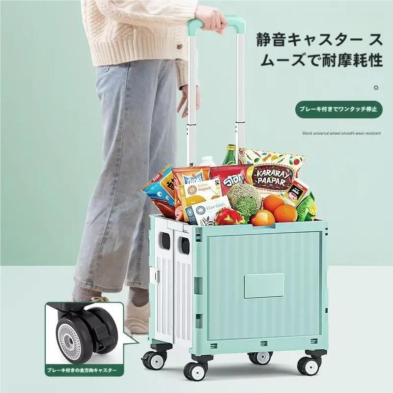 キャリーカート 折りたたみ 階段対応ワゴン 台車 ピークル ショッピングカート 高齢者向け 容量40L 耐荷重50kg キャスター/フタ付き アウトドアにも