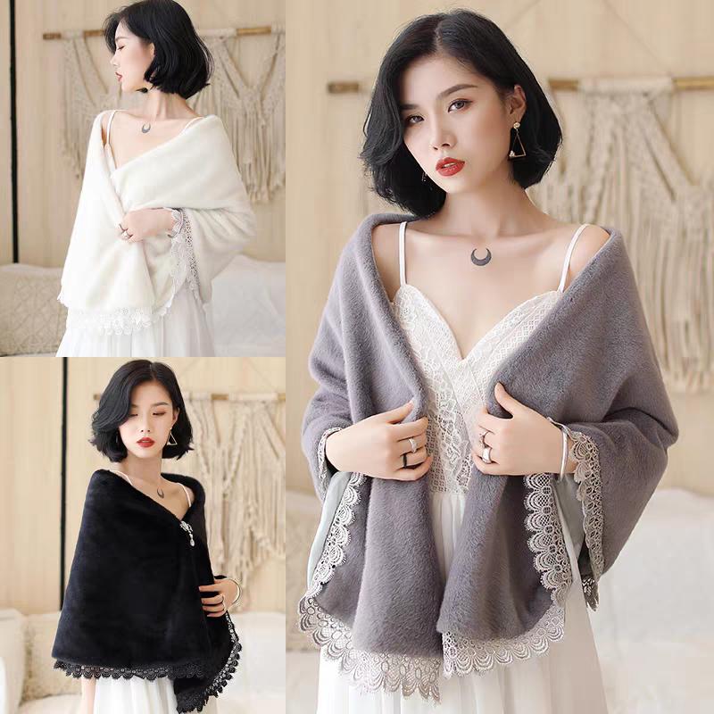 ボレロ 結婚式 ケープ 秋冬 防寒 レース ティペット ピークル ショール お呼ばれ 謝恩会 晴れ着 振袖 和服 パーティー 成人式 二次会 もこもこで暖かい