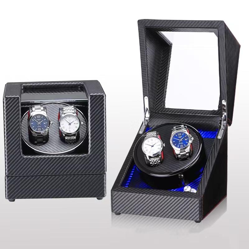 ワインディングマシーン2本ウォッチワインダー自動巻き上げ機機械式2本巻腕時計ケースワインディングマシーンピアノ鏡面仕上レザー調腕時計収納