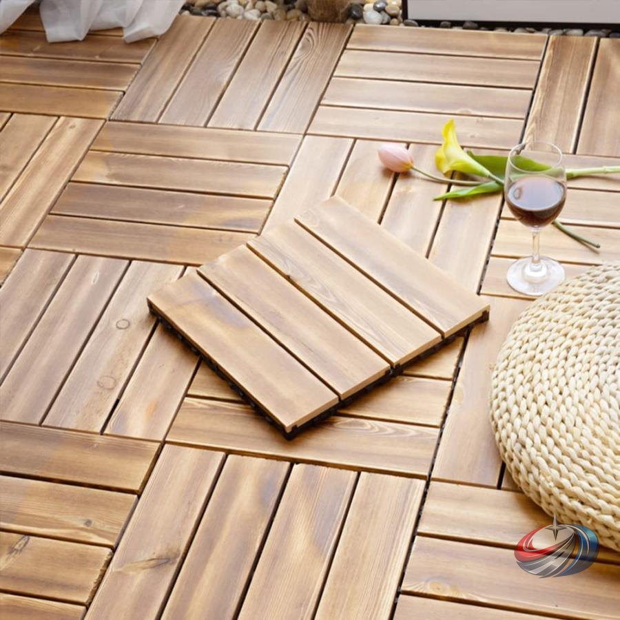 天然木ウッドパネル ウッドタイル 60枚 約3.3畳 ピークル ジョイント式デッキパネル 炭化防水 滑り止め 天然木材で簡単施工 ベランダDIYに最適