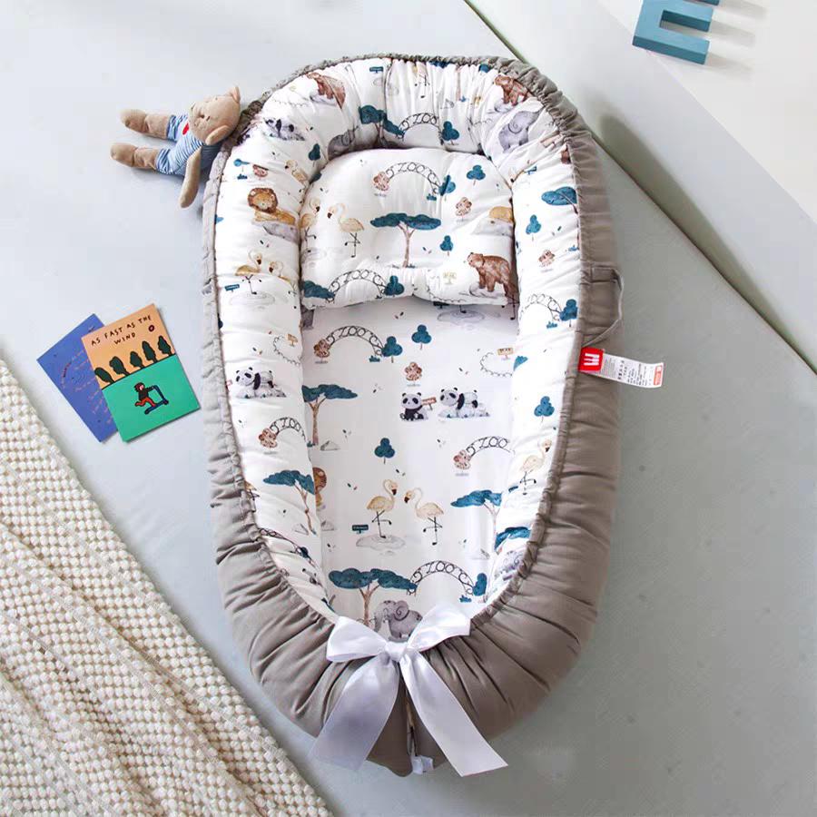 ベビーネスト 新生児ベッド ポータブル 綿100% 通気性 ピークル 低アレルギー 両面仕様 枕付き 取り外し簡単 洗濯OK ベビーベッド代わり お昼寝スペースに