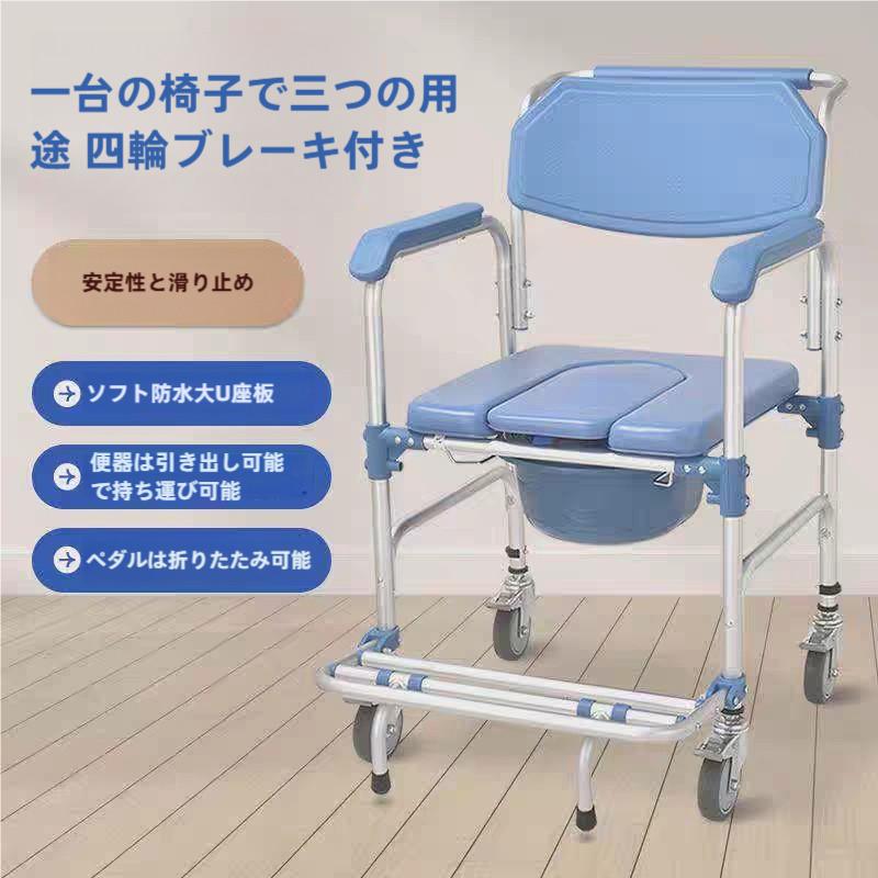 入浴用車いす 椅子式トイレ シャワーチェアー キャリー メディカルサービス 車椅子 省スペース簡易シャワー 入浴 シャワー用 家庭 住宅介護用 背もたれ付きの椅