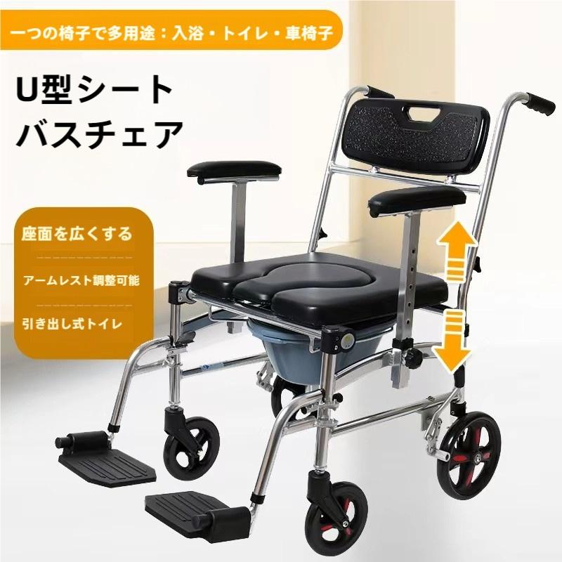 折りたたみ入浴用車いす軽量防水バスチェアキャスターアルミトイレ付きブレ一キ付介護用歩行補助ベルト付きリハビリ株式会社錦省スペース車椅子お風呂用車い