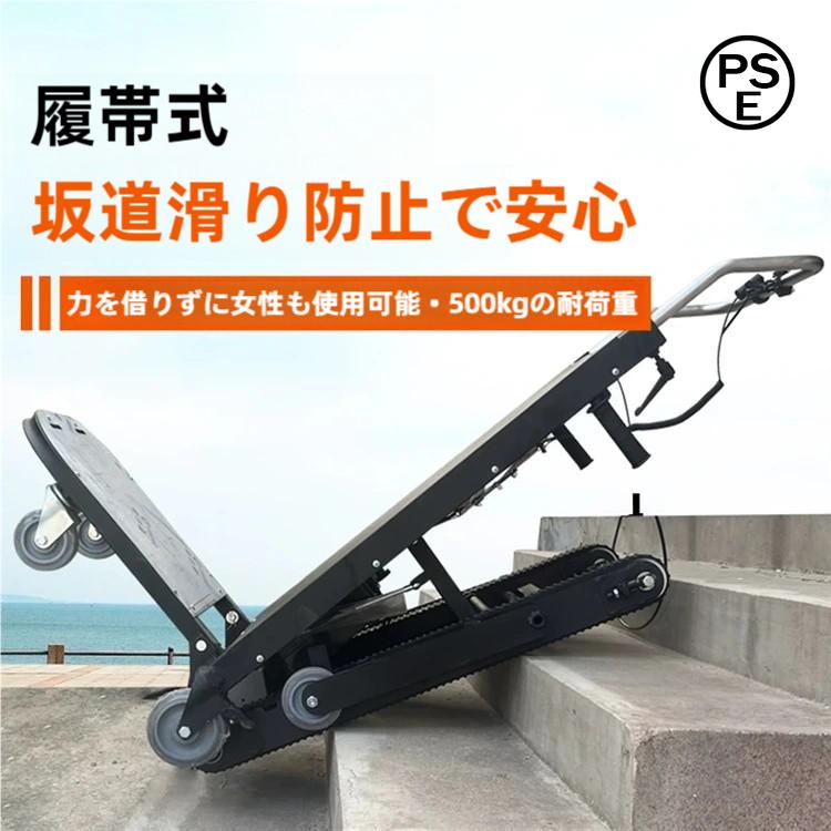 電動折りたたみ台車 電動階段昇降台車 積載量300kg 使用時間/5時間 家庭用重量物運搬用 Black