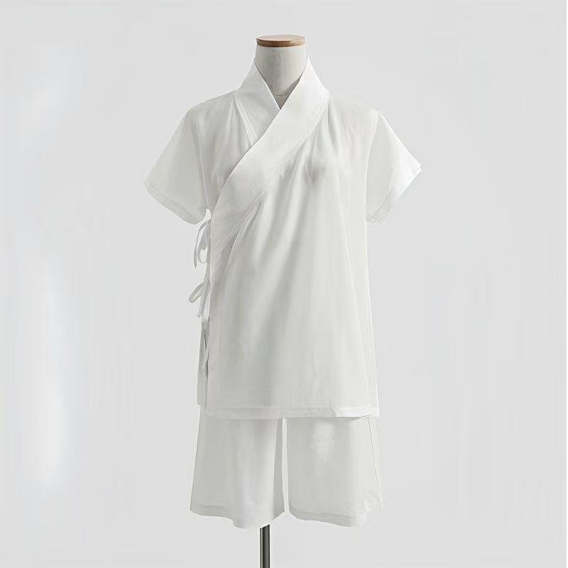 簡単半襦袢上下セット衿付き ピークル 速乾Tシャツ+ハーフパンツの着物インナー レディースメンズ白 半袖で快適 きもの下着として着付けがラクになる