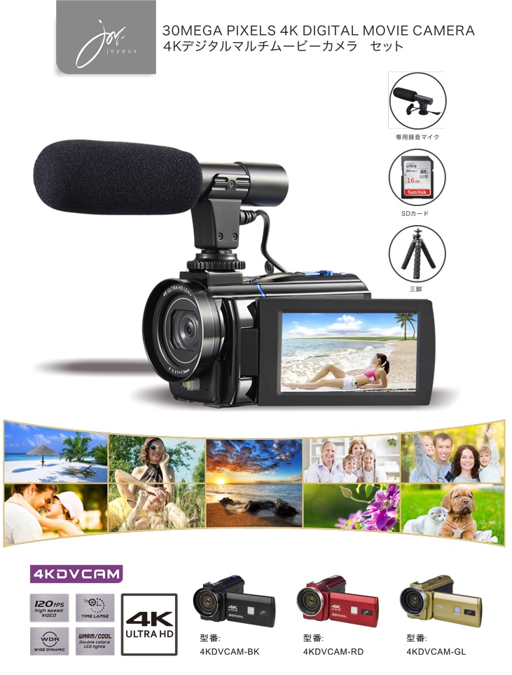 JOYEUX 4Kデジタルマルチムービーカメラ セット