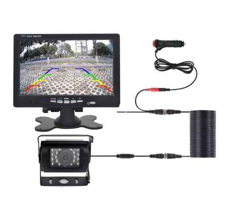 7インチカラー TFT LCD モニター + 18LED ナイトビジョンバックカメラ + 20 メートルの延長ケーブル。有線接続により、安全でクリアで安定したバック画像が保証されます。モニター付きバックカメラセットにはスタンドも付属しています。シガーソケット常時電源を採用。シガーソケットから電源を取れるので、常時後方ビューのモニターが可能シガーソケットには電源ボタン付きなので手元でON/OFFが可能です。もちろん付属のリモコンでの操作も可能。(別途直付けの電源ケーブル(別売)で接続すればバックランプと連動させる事も可能)モニターは2チャンネルビデオ入力、高解像度画像、フルカラーディスプレイ、低消費電力、調整可能な明るさ、コントラスト、色の調整が可能。 反転ボタン付きなので、映像を反転させる事が可能。ハードメタルケース式のカメラは防震、防水、抗干渉、耐熱性、耐寒性があり、すべての天候に対応します。車庫入れ時に便利なガイドライン付きの仕様になります。ナイトビジョン用の 18 個の IR LED + 120° の水平広視野角 + 180° の垂直調整可能な角度で死角を確認できます。常時電源に接続するとフルタイムで動作します。20m 4ピンケーブルは強力な干渉防止、より緊密な接続、取り付けが簡単。 太いハードワイヤーは、通常の AVケーブルよりも車両の回路干渉をシールドします。ロング20mコードが付属されているので、12〜24V DC電源の電圧範囲で、トラック、バス、RV、トラクター、重機、乗用車などの幅広い車両に対応します。付属品7インチモニターシガーソケット電源ケーブル4pin 20m映像ケーブル暗視対応防水バックカメラリモコン※商品ページ画像の通り接続するのみになりますので、説明書は付属してお