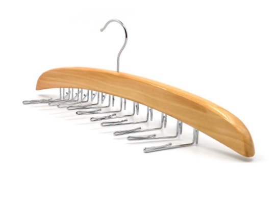 ネクタイ掛け、ベルト、スカーフ、ハンカチ、タオル、キャミソールハンガーなどとして、一度にたくさん収納できる木製のハンガーとおりたたみできるフックで、狭い場所でもコンパクトに収納出来る便利グッズ