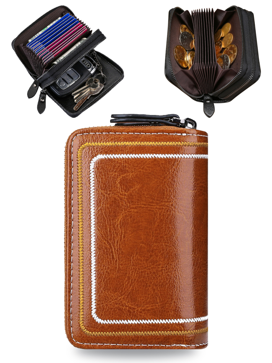 (3)軽量かつ大容量設計を実現:本体重量約115gと軽量、スマートキー 自宅の鍵 小銭 お札 キャッシュカード クレジットカード デビットカード 保険証 名刺も収納可能(名刺は2ヶ所の多機能ポケットのみ対応)
