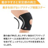 ヒザの曲げ伸ばしをしやすい独自のアクティブ樹脂ステーとお皿まわりのパッドが、ヒザをしっかり安定。