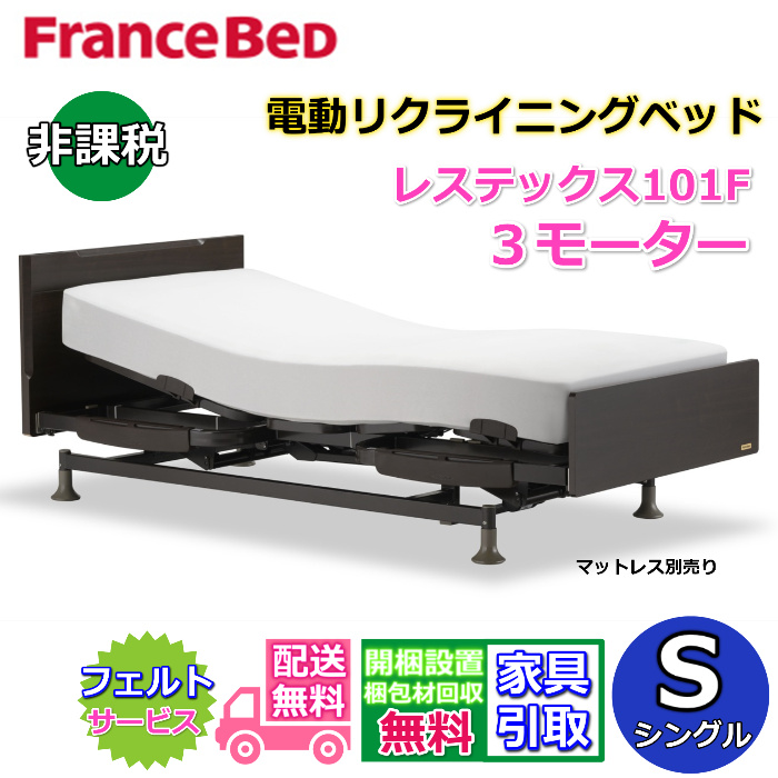 フランスベッド 電動リクライニングベッド レステックス101F シングル 【開梱組み立て設置無料】3モーター レッグ型 背上げ・脚上げ・上下昇降機能 非課税