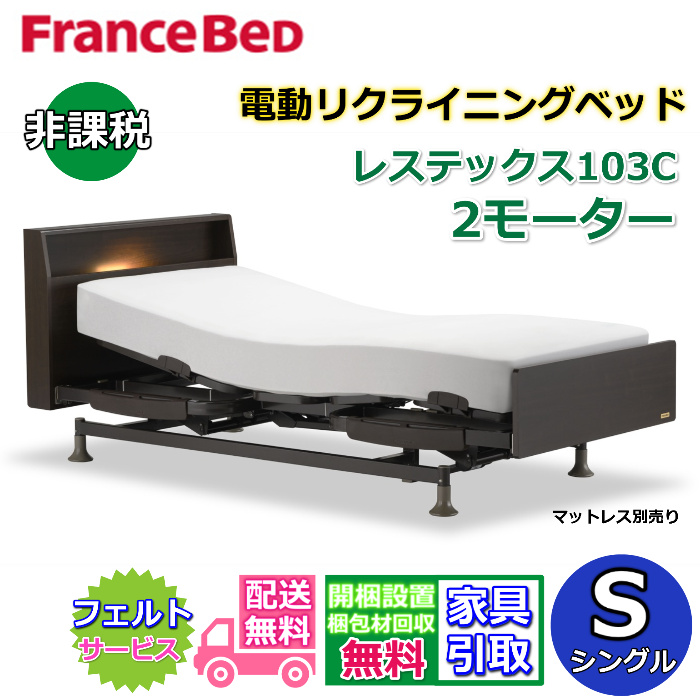 フランスベッド 電動リクライニングベッド レステックス103C シングル 【開梱組み立て設置無料】2モーター レッグ型 背上げ・脚上げ機能 電動ベッド 非課税