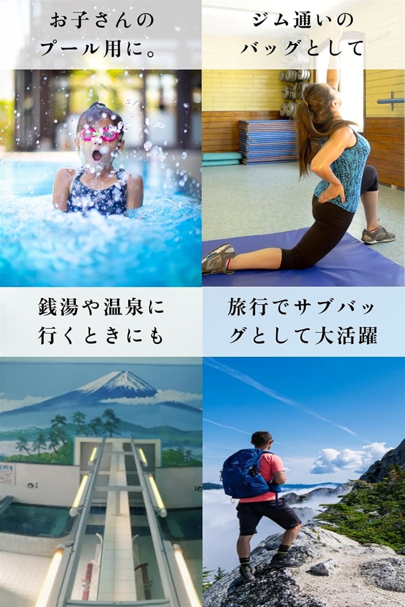 ジムで利用するジムバッグ・ジムサックや、プール・水泳で利用するプールバッグとしても大活躍できます。