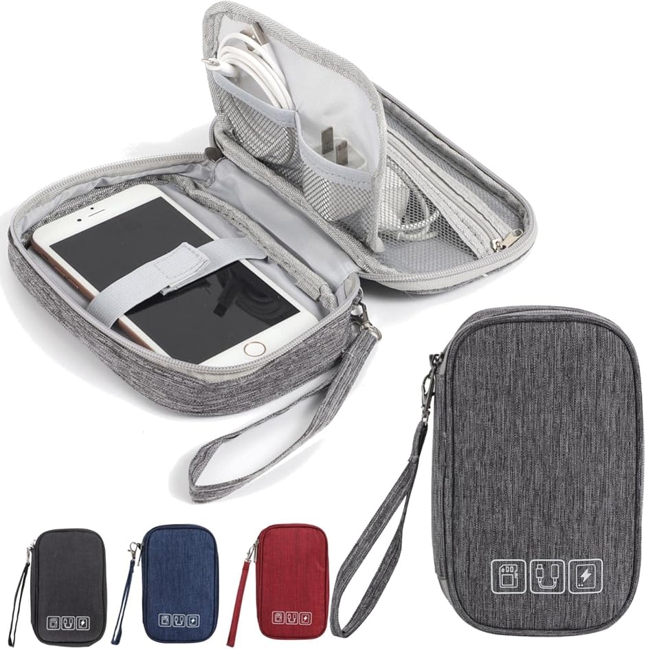 | 商品名 | ケーブル 収納 ポーチ バッテリー ガジェット マウス 充電器 USBメモリ 3層タイプ グレー |
