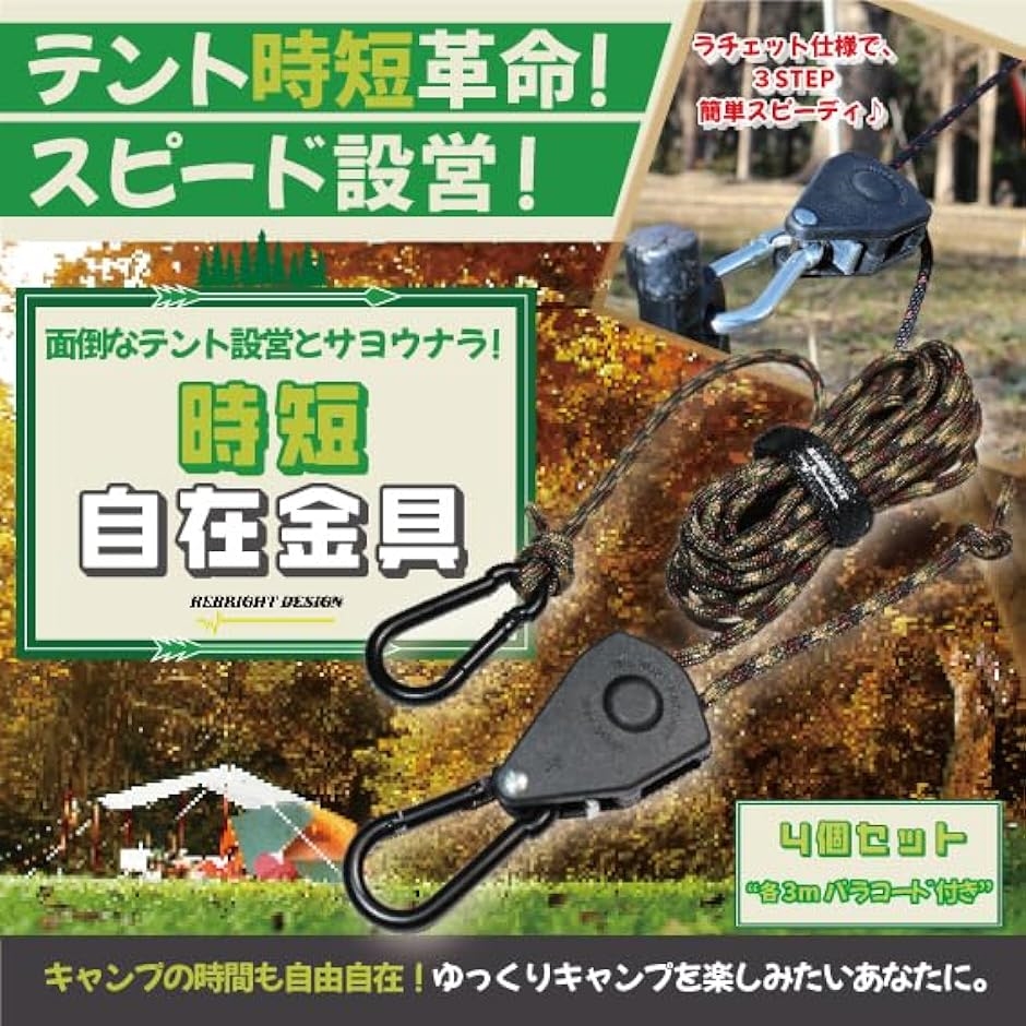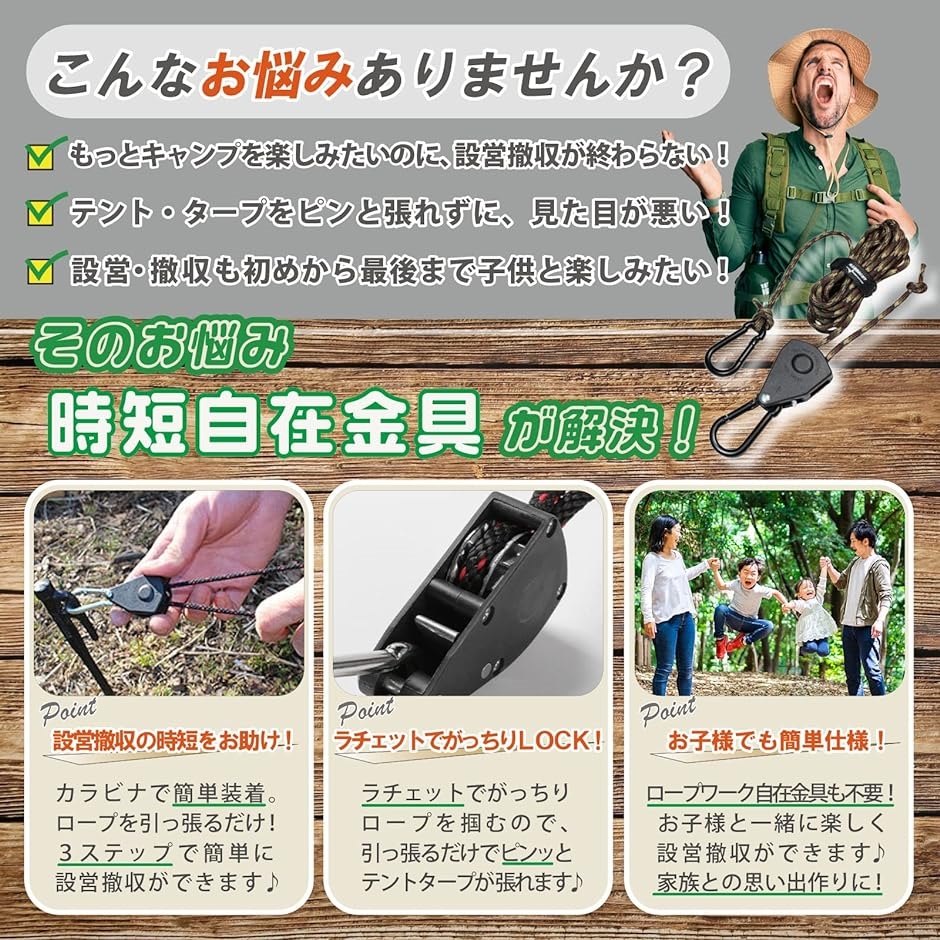 | 商品名 | 自在金具 時短自在金具 時短設営 キャンプ用品 タープ テント ガイロープ パラコード ソロキャンプ アウトドア 4個セット 迷彩 |