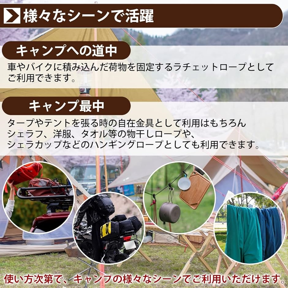 おうちに帰ったら、キャンプ道具をまとめるロープとしてご活用ください