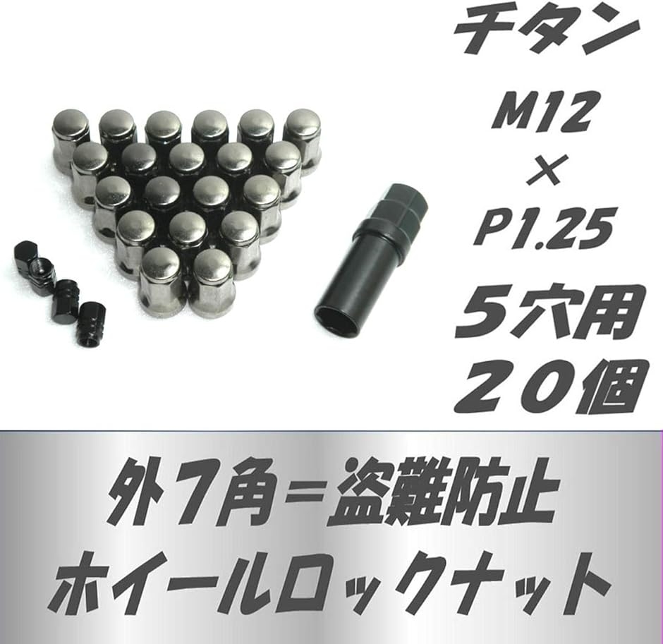 | 商品名 | 外7角形 ロック ナット M12 アダプター エアバルブキャップ 付き 盗難防止 ドレスアップ 41 チタンP1.25 5穴用20個 |