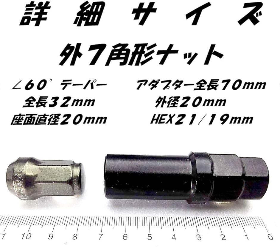 16、20、24個全てがヘプタゴンの7角形でロックナット仕様(スチール製)です。