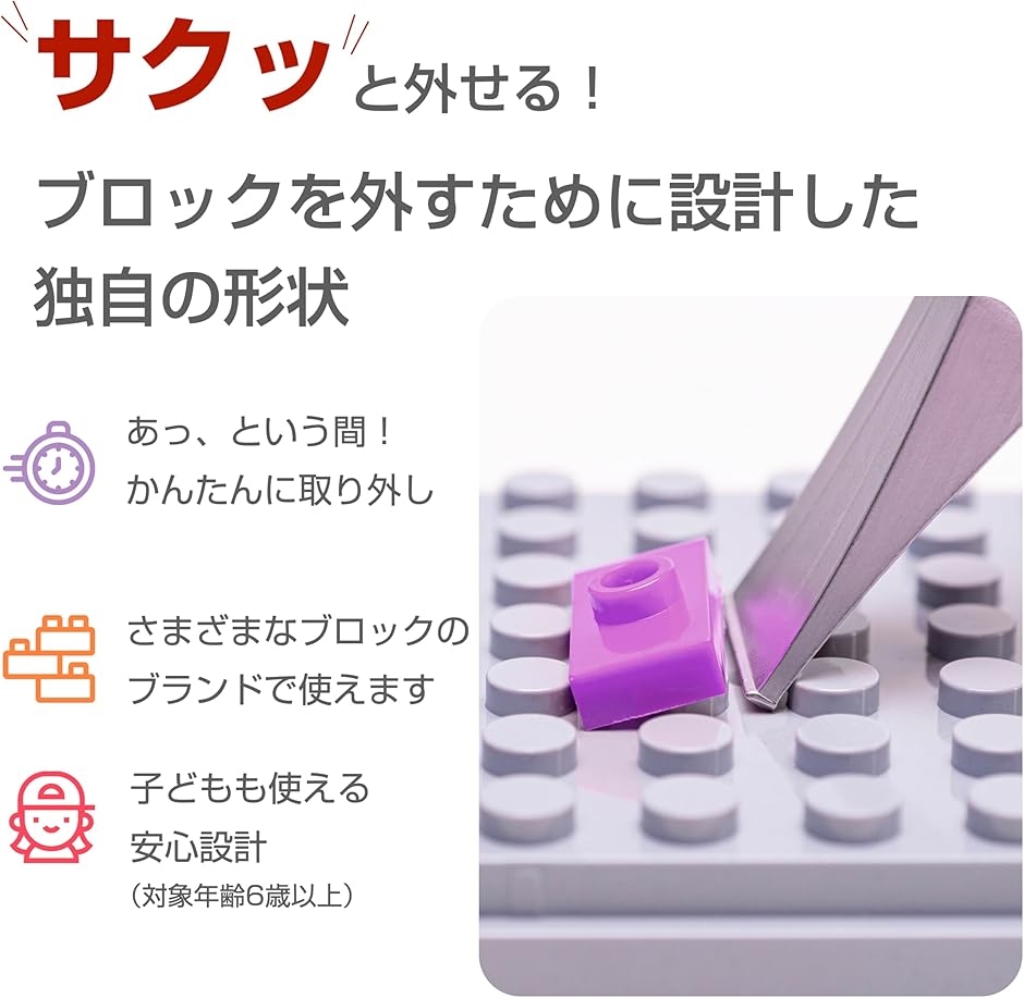 「ラクラク取り外し」爪や指を傷めず、レゴなどのブロックを簡単&素早く外せる専用ツールです