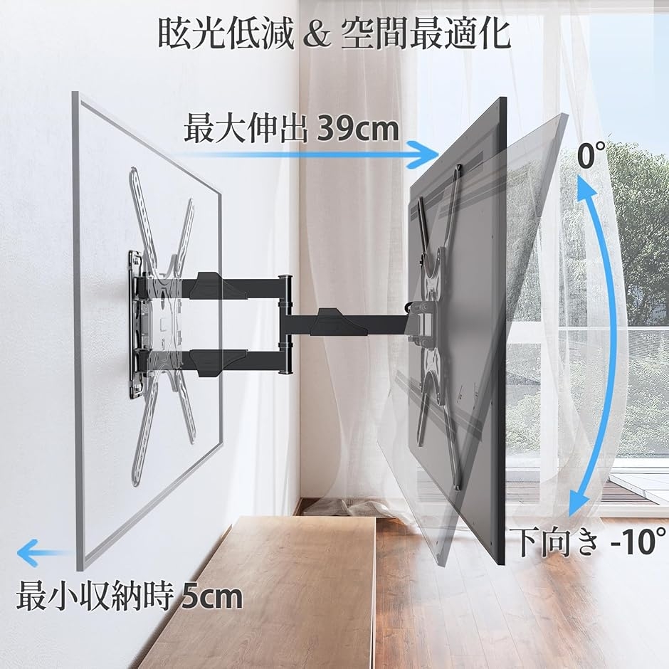 最大約39cm伸出し、約5cmまで収納可能で、視聴位置と省スペースを両立。