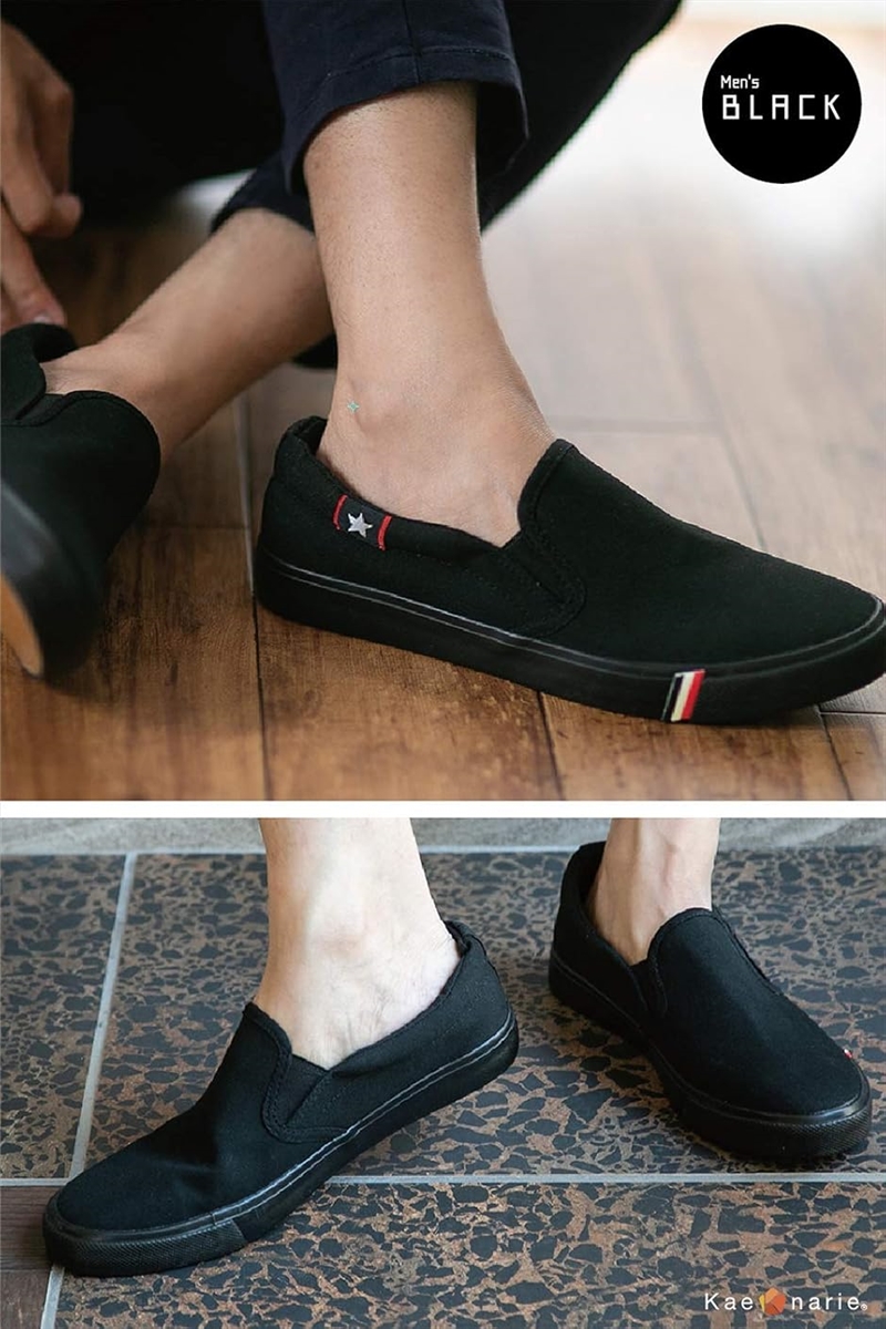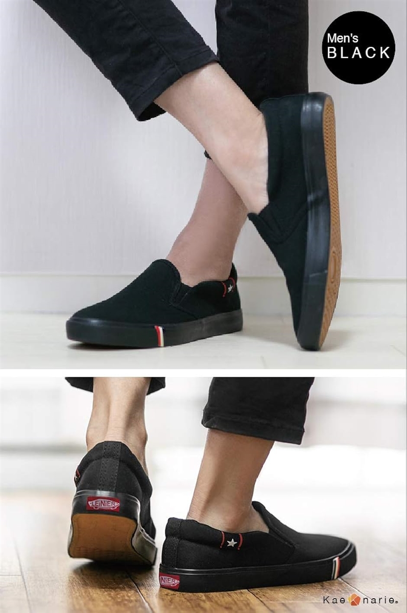 (カエナリエ)Kaenarieメンズレディーススリッポンデッキシューズ黒白キャンバスカジュアルスニーカー男女