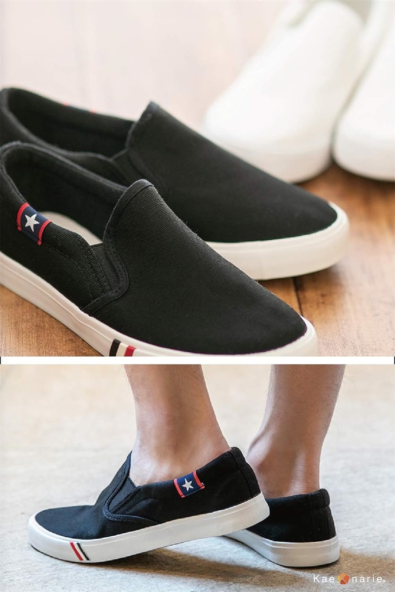 シンプルなキャンバス地のメンズ用スリッポン*飽きのこないベーシックなデザインは女性にもおすすめ。