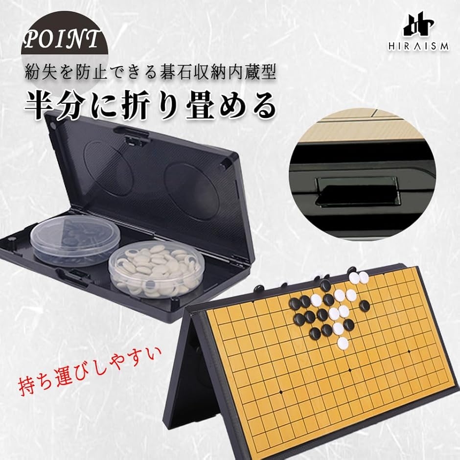 折りたたむと半分のサイズになり、手軽に持ち運べるので、外出先での囲碁対局にとても便利です。
