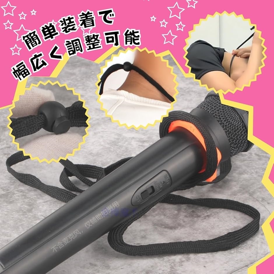「疲労軽減で快適なパフォーマンス」 首掛けデザインのマイクホルダーは、手でマイクを持つ負担を軽減し、長時間の使用でも快適さを維持します。